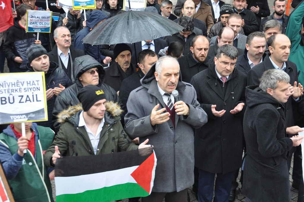 Türkiye Gençlik Vakfı Artvin İl Temsilciliğinin (TÜGVA) organizasyonu ile Artvin Sivil Toplum Platformu tarafından Halitpaşa Meydanı’nda düzenlenen basın açıklamasında Siyonizm karşıtı sloganlar atılarak Kudüs’ün İsrail’in başkenti olması söylemleri protesto edildi.