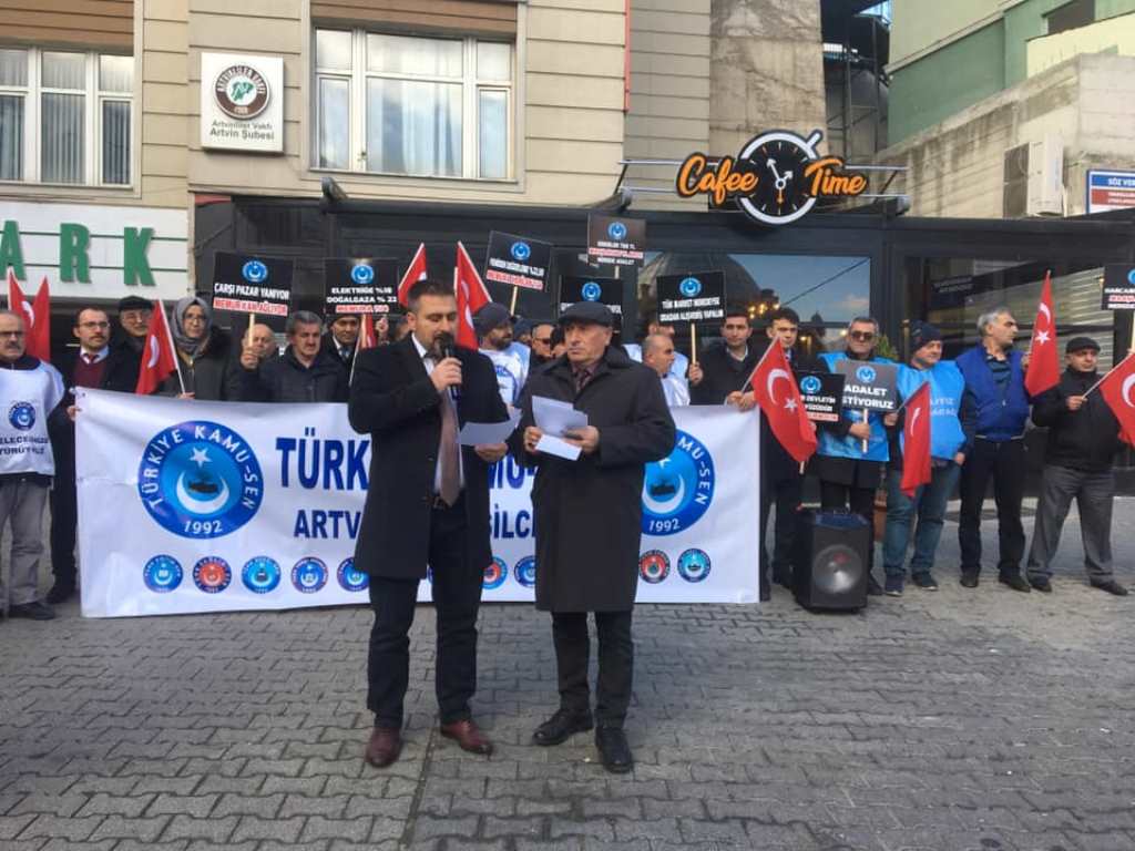 81 ilde eş zamanlı olarak gerçekleştirilen basın açıklaması ilimiz Halitpaşa meydanında gerçekleşti. Basın açıklamasını Türkiye Kamu-Sen Artvin il Temsilcisi, Türk Eğitim-Sen Şube Başkanı İsrafil Bayrak yaptı.
