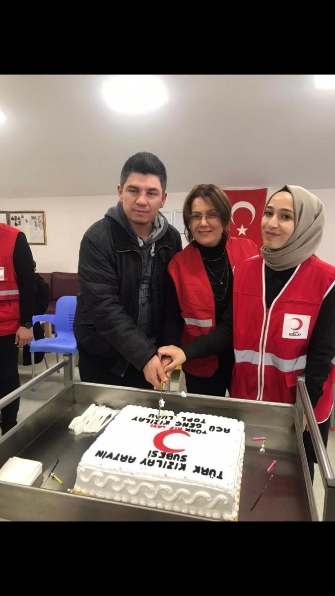 AÇÜ Kızılay Derneği öğrencileri, yerleşke sakinlerine pasta keserek müzikli kutlama yaptı.