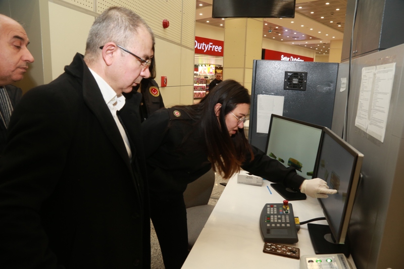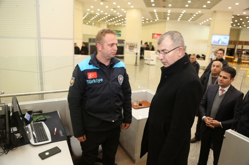 Gümrük sahasında bir süre incelemelerde bulunan Vali Doruk, burada görev yapan personellerin yaptığı iş ve işlemler hakkında bilgi aldı.