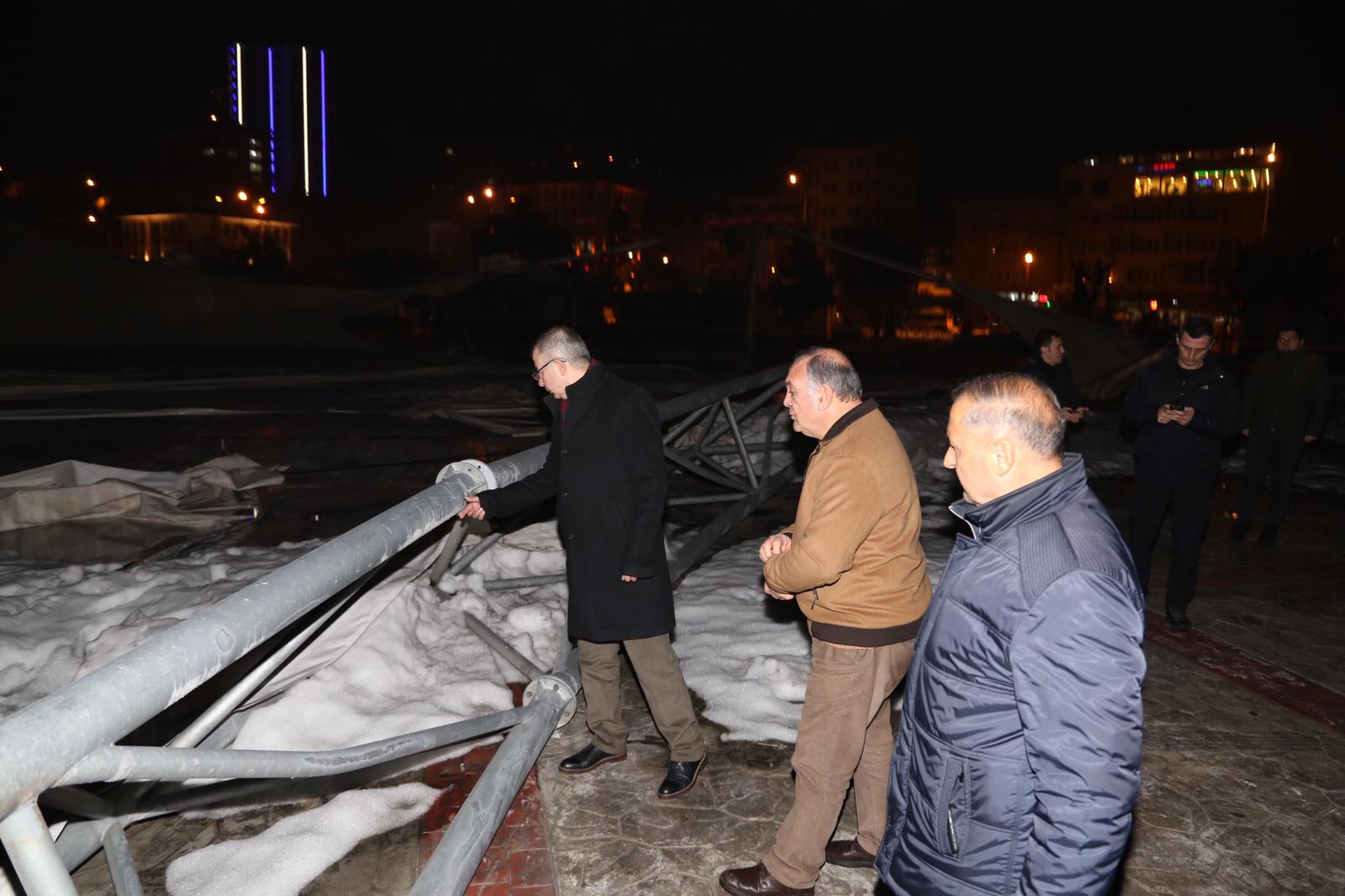 Artvin Valisi Yılmaz Doruk, geçtiğimiz günlerde Arhavi ilçesinde etkili olan kar yağışının ardından pazar yeri ile gösteri merkezi çadırının çöktüğü alanları yerinde inceledi.