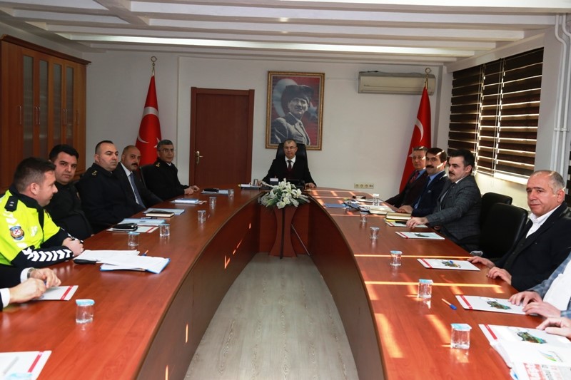 Valimiz Sn. Yılmaz Doruk Başkanlığında gerçekleşen toplantıya İl Jandarma Komutanı J.Kd.Alb. Bahtiyar Yılmaz, İl Emniyet Müdürü Sinan Ergan, İl Milli Eğitim Müdürü Fahri Acar ve Yolcu Taşımacılığındaki sektör temsilcileri Katıldı