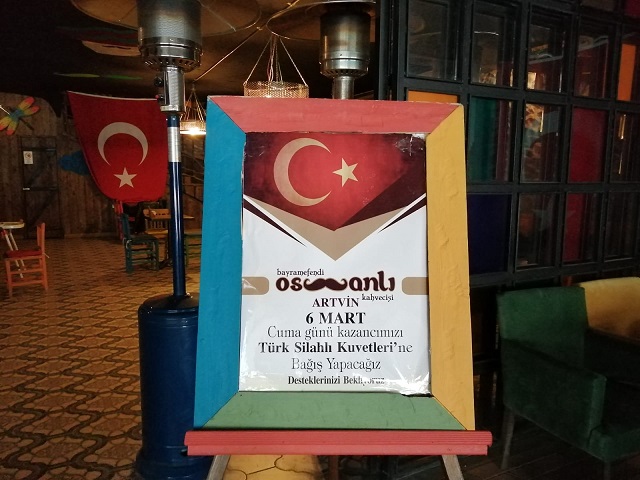 Artvin’deki en önemli kafe işletmelerinden olan Bayramefendi Osmanlı Kahvecisi 6 Mart Cuma günü elde ettiği kazancı TSK’ya bağışladı.