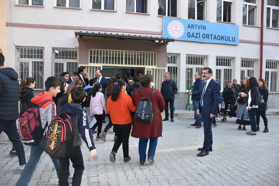 Milli Eğitim Bakanlığı İnşaat ve Emlak Dairesi Başkanlığı tarafından, ülkemiz genelindeki eğitim yapılarının deprem riskine karşı yürüttüğü çalışmalar, sonucunda deprem olması durumunda risk taşıdığı belgelenen ve yıkılıp yeniden yapılması kararlaştırıln Artvin Gazi Ortaokulu geçici yeni binasına taşındı.