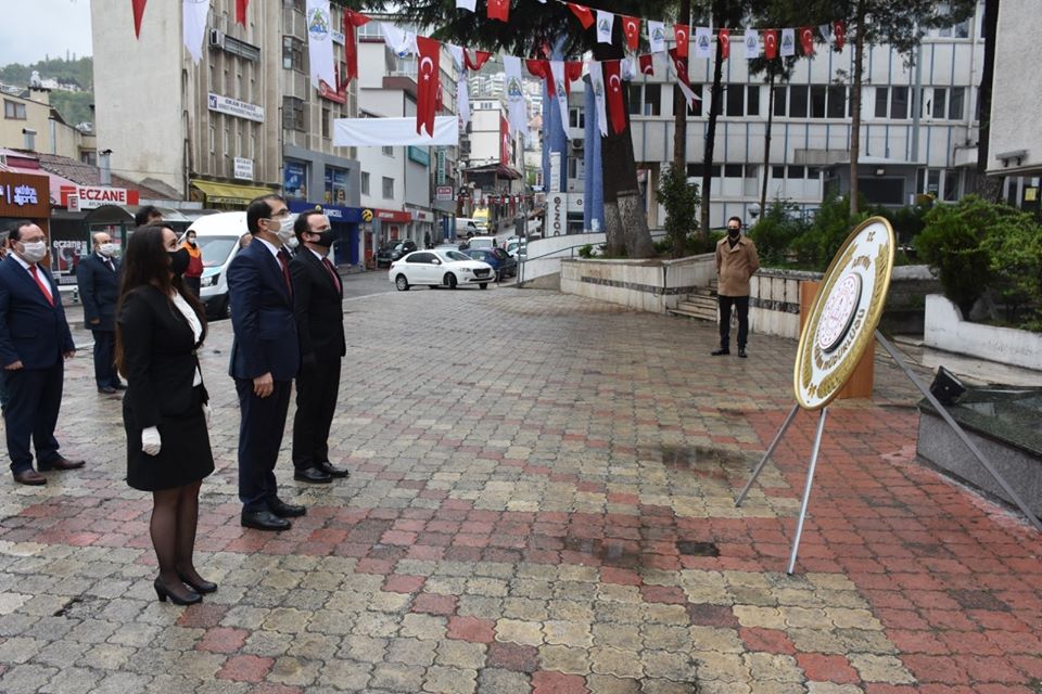 Valilik önündeki Atatürk Anıtı’nda düzenlenen törende İl Milli Eğitim Müdürü Fahri Acar Atatürk Anıtı’na çelenk sundu.