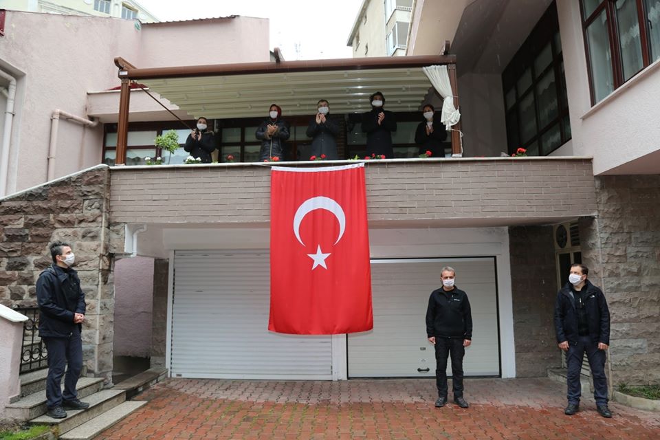 Yeni Tip Koronavirüs (Kovid-19) salgını ile mücadele kapsamında törene katılanların maske taktığı ve sosyal mesafe kuralına uyduğu gözlendi.