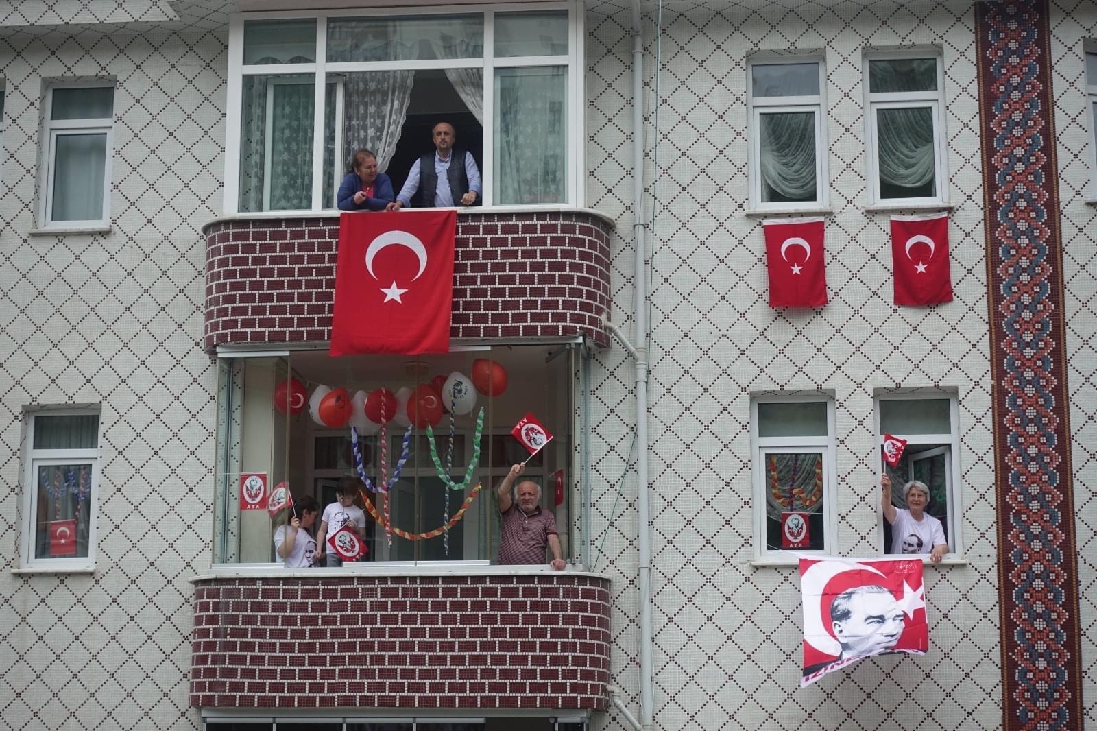Artvin Valisi Yılmaz Doruk da eşi Meral ve oğlu Melih Baha Doruk’la evinin balkonundan kutlamalara katıldı.