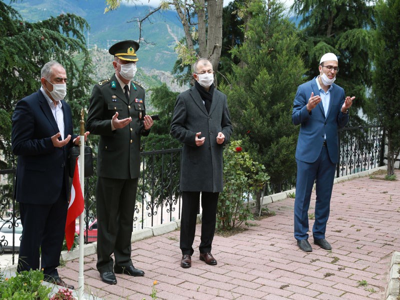 Doruk ve beraberindekiler, şehit mezarlarını tek tek ziyaret ederek karanfil bıraktı.