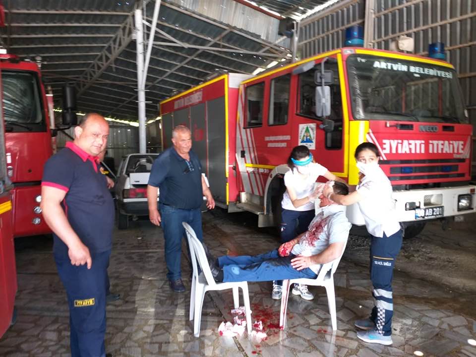Artvin’de Miralay Şükrübey Caddesi’nde seyir halinde giderken freni boşalan otomobil itfaiye araç parkına girerek direğe çarptı. Yaralanan araç sürücüsüne ilk müdahaleyi itfaiye personeli gerçekleştirdi.