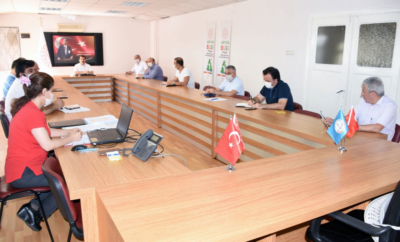 İl Milli Eğitim Müdürlüğü toplantı salonunda sosyal mesafe kuralına uygun şekilde yapılan toplantıda 20 Haziran 2020 Cumartesi günü yapılan Liselere Geçiş Sınavı (LGS), 27-28 Haziran 2020 tarihlerinde yapılan Yüksek Öğretim Kurumları Sınavı (YKS), 24-25-26 Haziran 2020 tarihlerinde yapılan Türkiye'nin ilk uluslararası Covid-19 online kongresi " Eğitimde Yeni Normlar", Artvin BİLGE Projesi konuları görüşüldü.