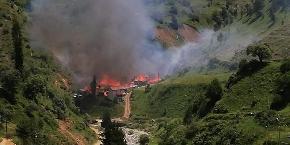 Artvin’in Yusufeli ilçesine bağlı Dokumacılar Köyü Sahlep (Kaynarca) mezrasında 7 Temmuz Perşembe günü bilinmeyen bir nedenle yangın çıktı. Sıcak hava ve rüzgârın etkisiyle yangın, çevredeki evlere sıçrayarak kısa sürede büyüdü. Yangına Yusufeli Belediyesi İtfaiye Ekipleri, ilçede bulunan şirketlerin itfaiye araçları ile Artvin Orman Bölge Müdürlüğün ve AFAD ekipleri müdahale etti. 4 saatlik çalışmanın ardından yangın kontrol altına alınırken, soğutma çalışmaları devam etti. Yangında can kaybı ve yaralanma yaşanmaması tek teselli olurken; 2 büyükbaş hayvan telef oldu. 25 ambar, 27 samanlık, 27 ahır ve 57 ev yanarak kullanılamaz hale geldi. Yusufeli Belediye Başkanı Eyüp Aytekin yayımladığı geçmiş olsun mesajında, “İlçemiz Dokumacılar Köyü Sahlep Mahallesi’nde ki yangında can kaybının olmaması en büyük tesellimizdir. Yangından etkilenen tüm vatandaşlarımıza ve Dokumacılar Köylü hemşerilerime geçmiş olsun dileklerimi iletiyorum. Devletimizin, yangında zarar gören vatandaşlarımızın bundan önce olduğu gibi bundan sonrada yanlarında olacağını bilmelerini istiyorum. Rabbim, ilçemizi ve ülkemizi kötü felaketlerden korusun.” dedi. Yangın yerine belediye ekiplerince her gün yiyecek takviyesi yapılıyor.