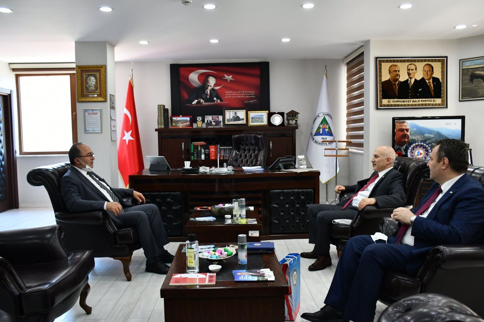 Gürcistan'ın Trabzon Başkonsolosu Gela Japaridze ve Gürcistan Trabzon Başkonsolos Yardımcısı Giorgi Qushıtashvılı, Artvin Belediye Başkanı Demirhan Elçin’i makamında ziyaret ederek bir süre Türkiye- Gürcistan ilişkileri ve Coronavirüs Covid-19’un etkileri üzerine sohbet ettiler.