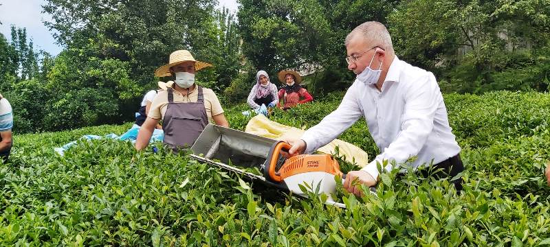 Yapılan hasat çalışmalarını yerinde inceleyen Artvin Valisi Yılmaz Doruk, “.Bilindiği üzere çay, bölge insanımızın toprağını da hayatını da kıymetlendiren önemli bir gelir kaynağı.Bu yüzden bu ekonomik değerin Pandemi sürecinden en az şekilde etkilenerek ekonomimize kazandırılması hepimizin önceliğidir.Başta kaymakamlıklarımız olmak üzere valiliğimiz koordinasyonunda hareket eden ilgili kurumlar buna yönelik toplantılar gerçekleştirdiler.Yapılan bu toplantılar sonucunda burada ihtiyaç duyulacak işgücünün yerli kaynaklarımızdan karşılanabileceği görüşü hâsıl olmuştur.Bizlerde devlet olarak yerli iş gücünü desteklemek adına gerekli adımları attık.Bu kapsamda vatandaşlarımıza çay toplamadaki iş gücünü kolaylaştıracak çeşitli ekipman desteklerinde bulunduk.Böylece burada oluşacak yerli kazancın ülkemiz içinde kalmasını ve kendi vatandaşımızın bundan ek gelir sağlamasını amaçladık Bu kapsamda oluşturduğumuz projeyle birlikte üreticilerimize toplamda 75 bin tl lik ekipman desteğinde bulunduk.Bu teşvikimizle birlikte projeden faydalananların elde ettiği ek gelir yaklaşık 1 milyon 500 bin tl oldu.Bu tarz oluşumların daha da arttırılması amacıyla desteklerimizin her daim süreceğinin altını çizmek istiyorum.Siz üreticilerimize bereketli kazançlar diliyorum.
