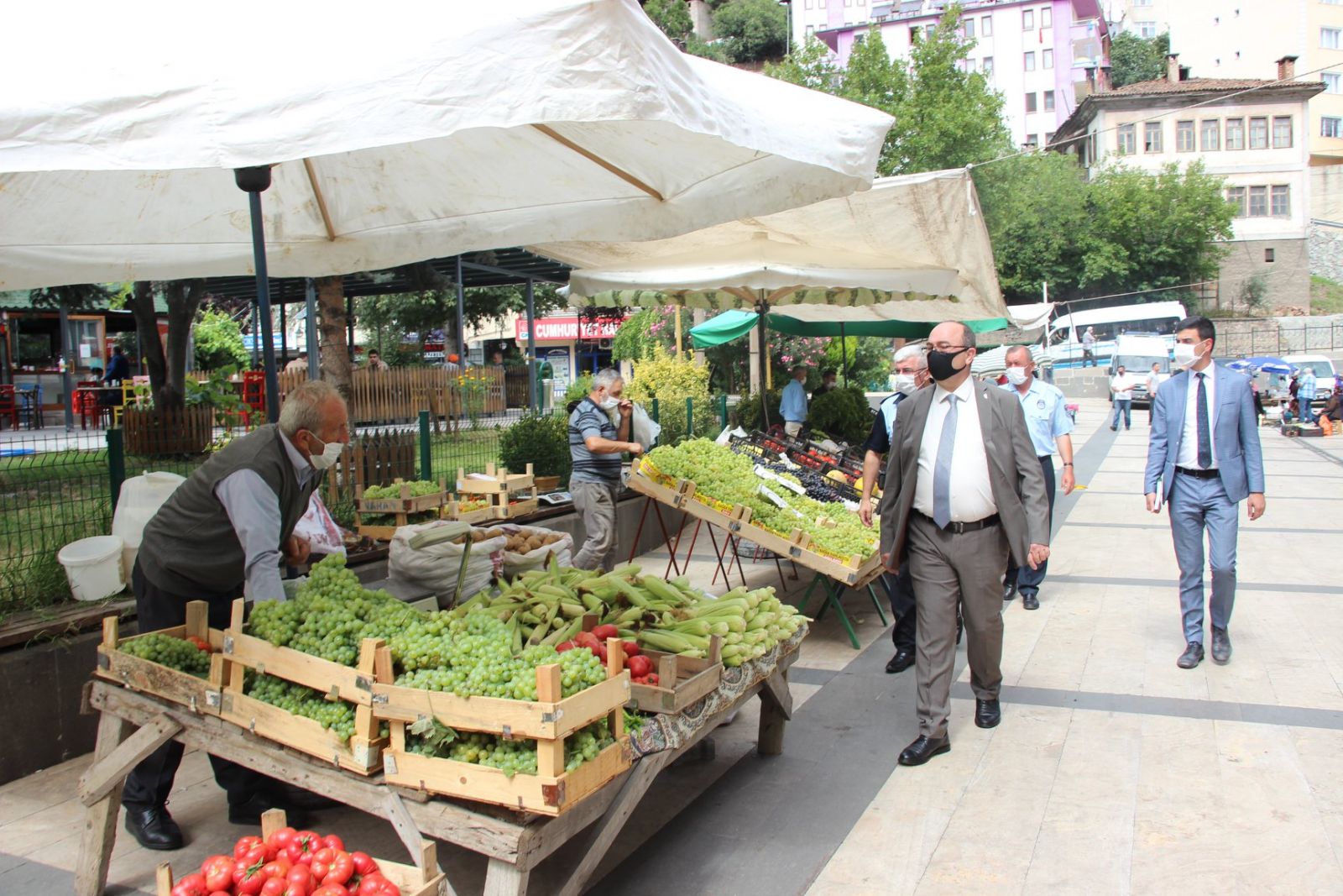 Artvin Belediye Belediye Başkanı Demirhan Elçin, Pazartesi günleri kurulan haftalık pazarı ziyaret ederek koronavirüse karşı alınan tedbirlere uymaları için pazarcı esnafını uyardı.