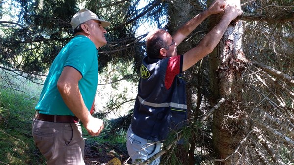 Orman Bölge Müdürlüğü, Ladin Ormanlarda zarar yapan Dev Kabuk Böceği (Dendroctonus micans) ve Sekiz Dişli Kabuk Böceği (Ips typographus)’a karşı biyolojik mücadele kapsamında, laboratuvar şartlarında üretilen, avcı böcek Rhizophagus grandis ve Thanasimus formicarius’un ergin ve larvaları kabuk böceklerinin zarar verdiği sahalara bırakılarak biyolojik mücadele çalışmalarına devam ediyor.