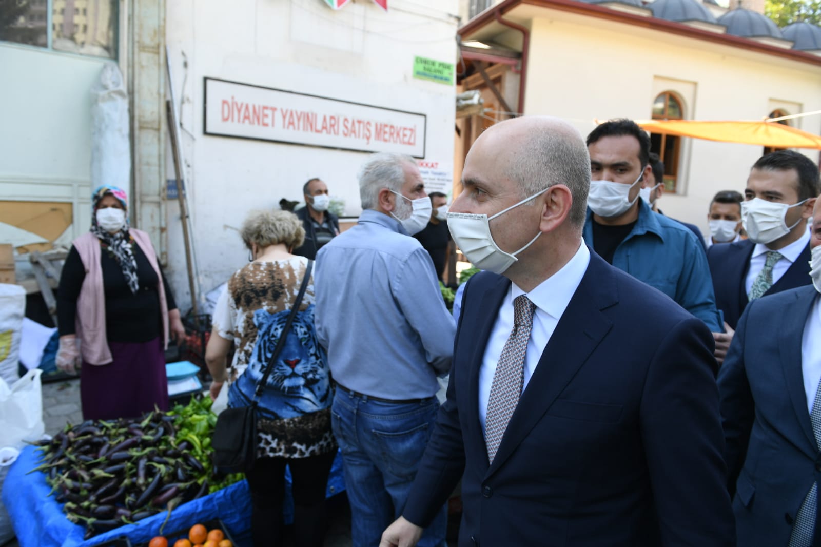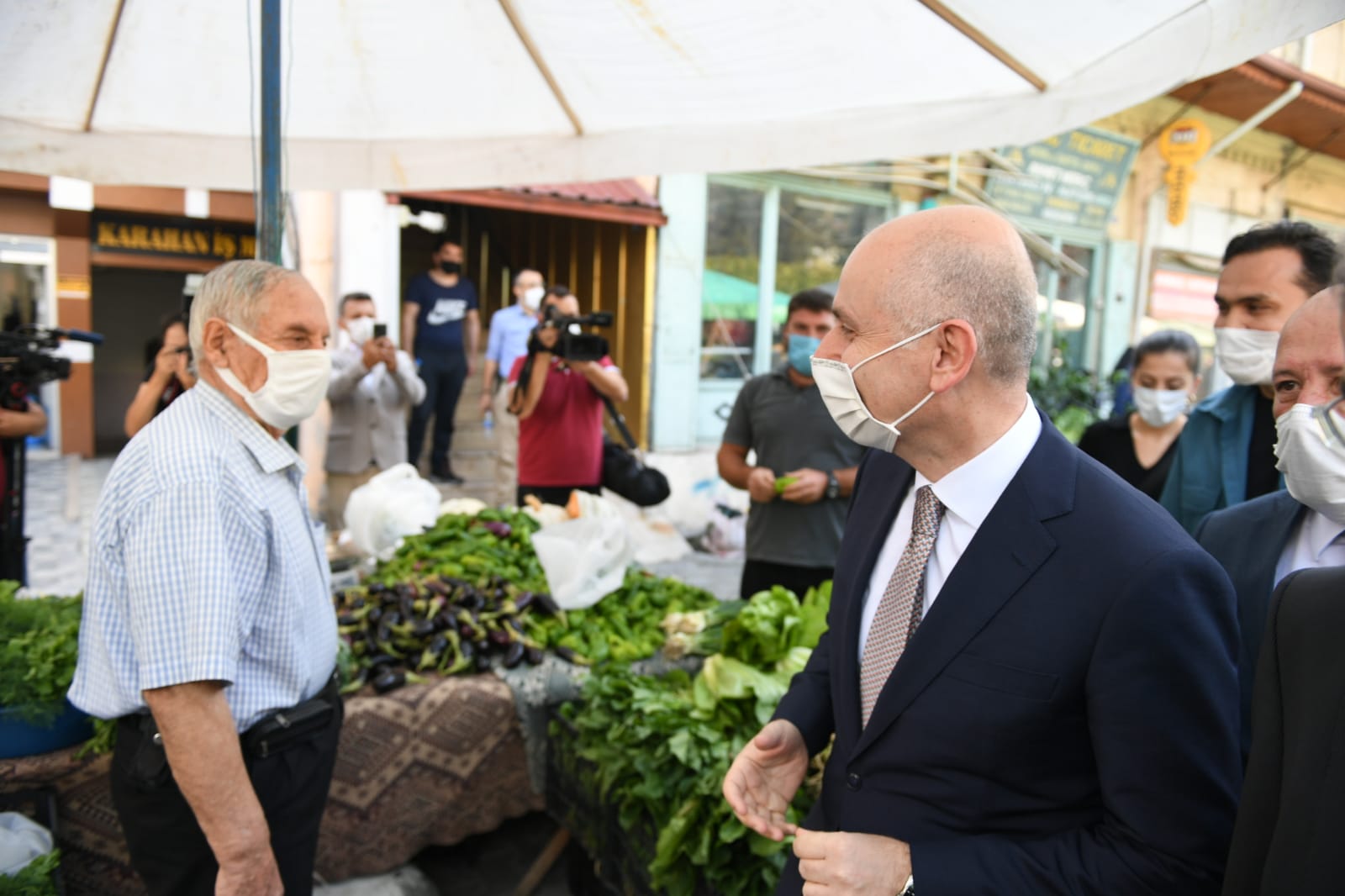 Bakan Karaismailoğlu, ardından Atapark Meydanı'nda kurulan halk pazarını da ziyaret ederek, pazarcı esnafı ve vatandaşlarla selamlaştı.