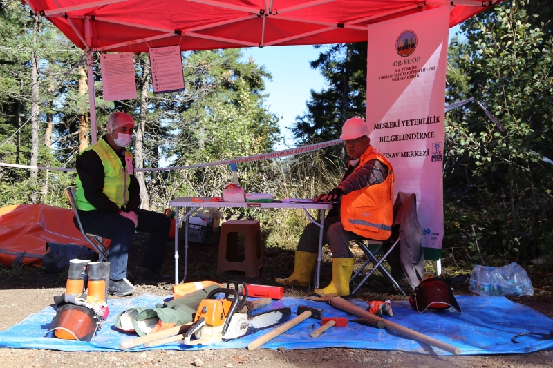 Sınavda görevli emekli Orman Mühendisi Ali Yıldız, yaptığı açıklamada "İş Kanunu gereği, Ormancılık Kooperatifleri Merkez Birliği Mesleki Yeterlilik ve Belgelendirme Birimi (OR-KOOP MYB) kanalıyla orman işçilerimize sınav yapıyoruz. Teorik, sürütme yükleme, boşaltma ve kesme işleminin yer aldığı bu sınavlar, üç istasyondan oluşuyor. İstasyondan başarılı olan orman işçilerine belge veriyoruz. Bunun daha da önemlisi mesleki yeterlilik kurumu tarafından. Akredite olan OR-KOOP tarafından veriliyor. Yaptığımız sınavda başarılı alan orman işçilerine, 5 yıl geçerlilik süresi olan belgelerini veriyoruz. Bu belgelerini alan işçiler orman kesiminde kullanacaklar. 2021 yılı sonuna kadar bu belgeleri almaları gerekiyor. Orman kesimi yaparken ellerinde bir belge olacak. Türkiye de orman işçisi belgesiz kalmayacak” ifadelerini kullandı.
