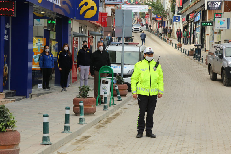 Saat 09.05’te siren sesleri eşliğinde saygı duruşunda bulunulmasıyla devam eden tören İstiklal Marşı okunarak bayrakların yarıya indirilmesiyle sona erdi.