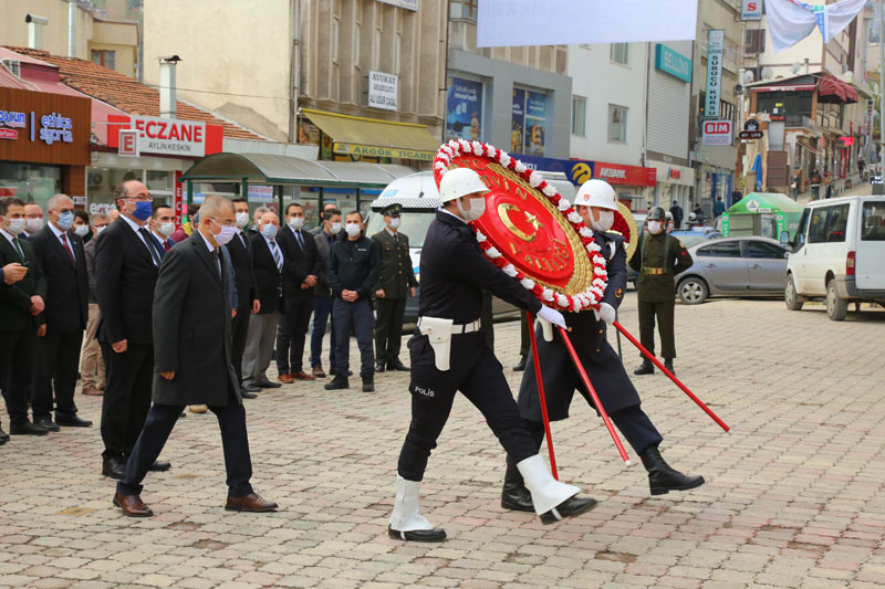 Milli İrade Meydanı’nda gerçekleştirilen tören, Artvin Valisi Yılmaz Doruk, Garnizon Komutanı Piyade Albay Şükrü Şenduran ve Belediye Başkanı Demirhan Elçin’in Atatürk Anıtı’na çelenk sunumuyla başladı.