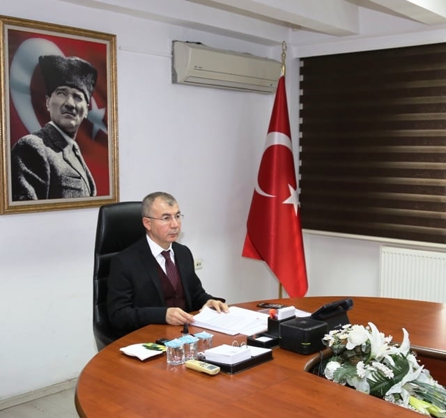 Vali Doruk’un koronavirüs salgını nedeniyle tedbir amaçlı olarak Valilik’ten video konferans aracılığıyla bağlandığı toplantıya kaymakamlar, belediye başkanları, daire amirleri ve yatırımcı kurum müdürleri katıldı.
