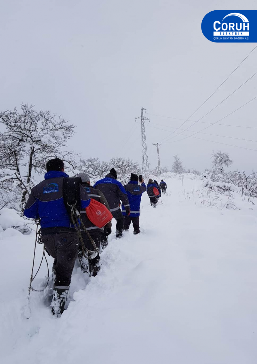 Çoruh EDAŞ, belediye ve il özel idare kurumları ile koordineli olarak yürüttüğü çalışmalarını, kapalı yolların açılma haberini takip ederek bölgenin dört bir yanında gece gündüz, dağ bayır demeden yoğun kar yağışı ve fırtınaya karşı aralıksız sürdürüyor. Öte yandan karın yoğun olduğu ve araçların ilerleyemediği bölgelere yaya olarak ulaşım sağlamaya çalışan Çoruh EDAŞ Ekipleri, zorlu arazi şartları ve ağır hava koşullarında kesintisiz enerji için canla başla mücadele ediyor.