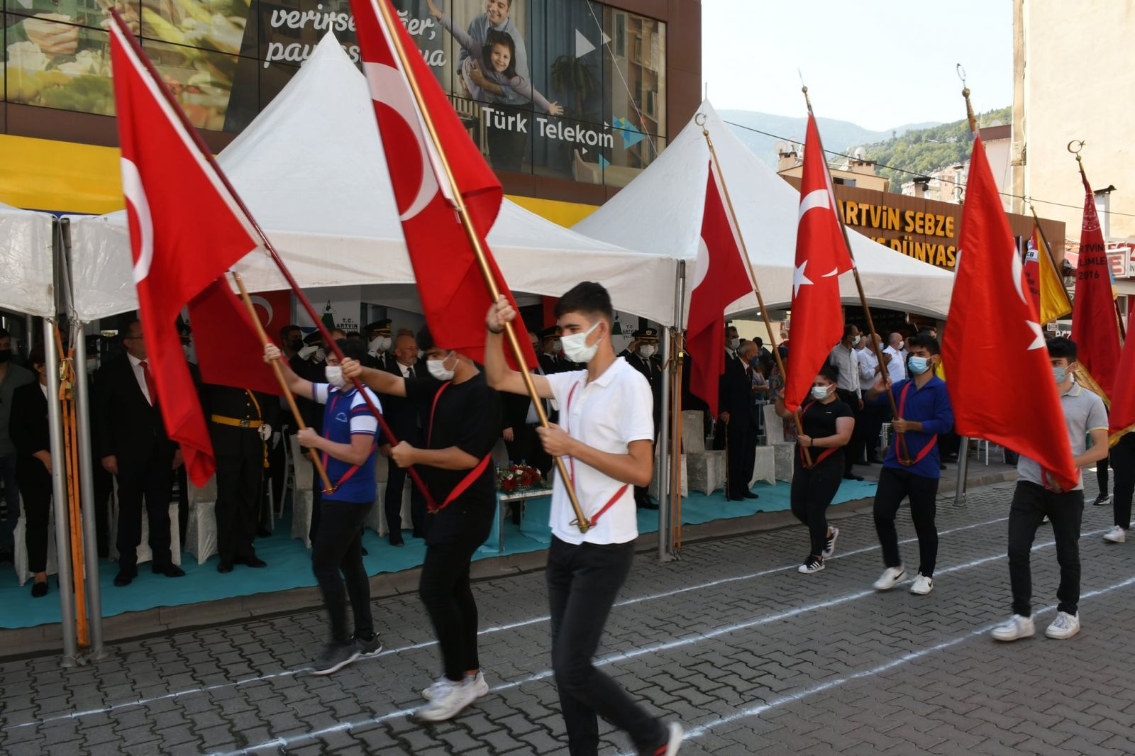 İl protokolünün katıldığı tören, öğrencilerin şiir okuması ve halkoyunları gösterisinin ardından resmi geçişle son buldu.