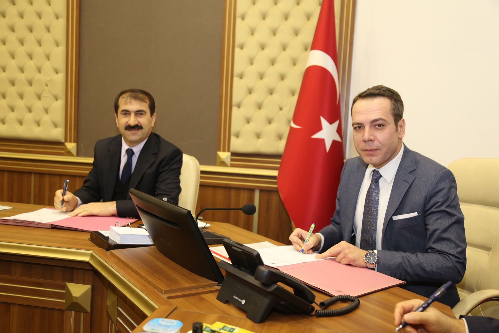 İmza töreninin ardından taraflar imzaladıkları protokol dosyalarını birbirlerine takdim etti.