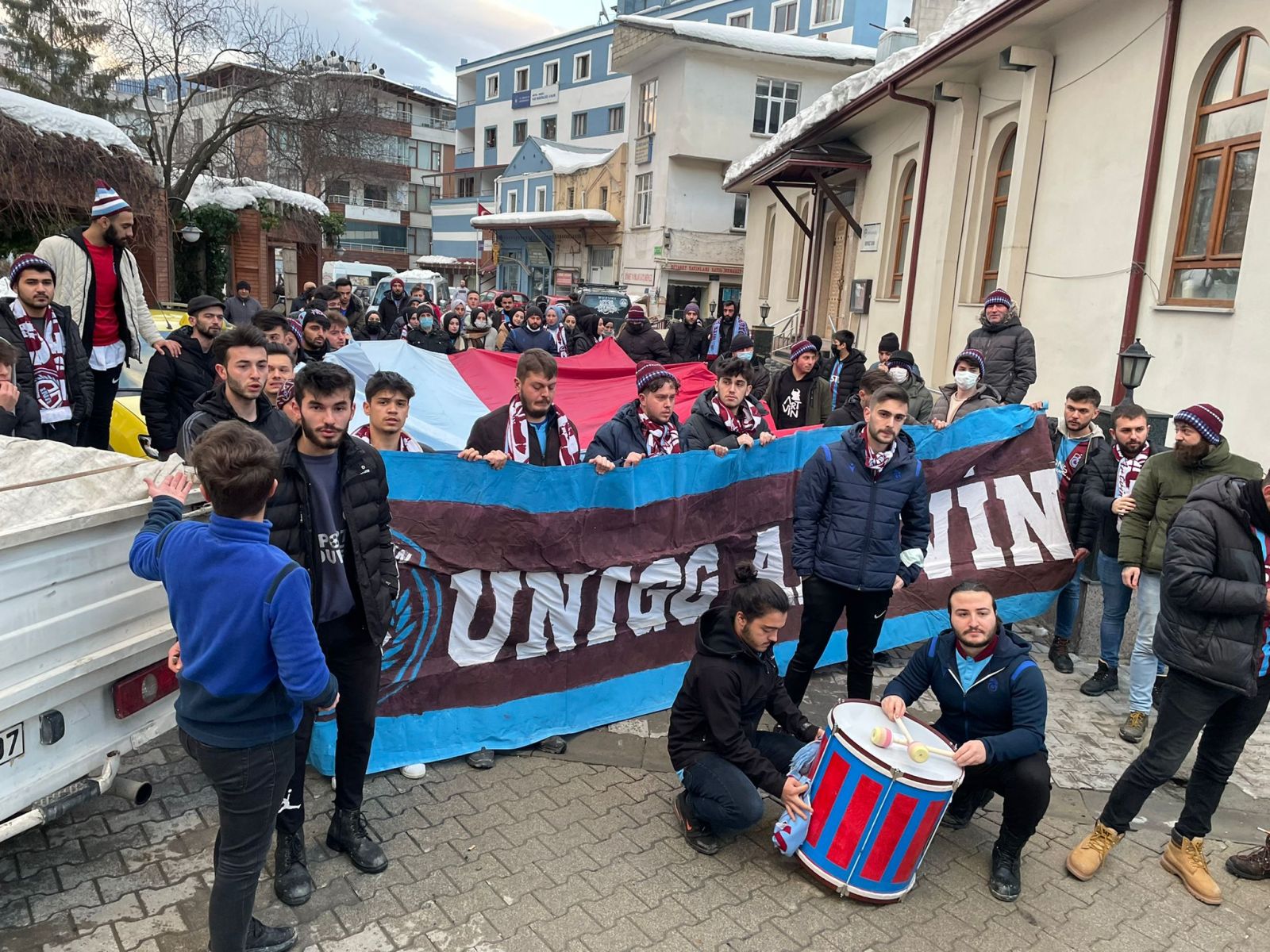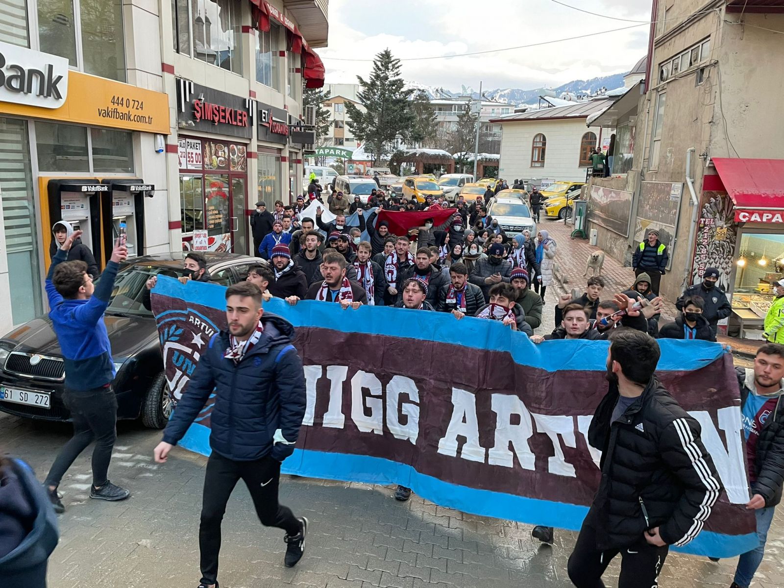 Artvin’de bir grup Trabzonspor taraftarı Galatasaray maçı öncesi takımlarına destek vermek amacıyla yürüyüş düzenledi.