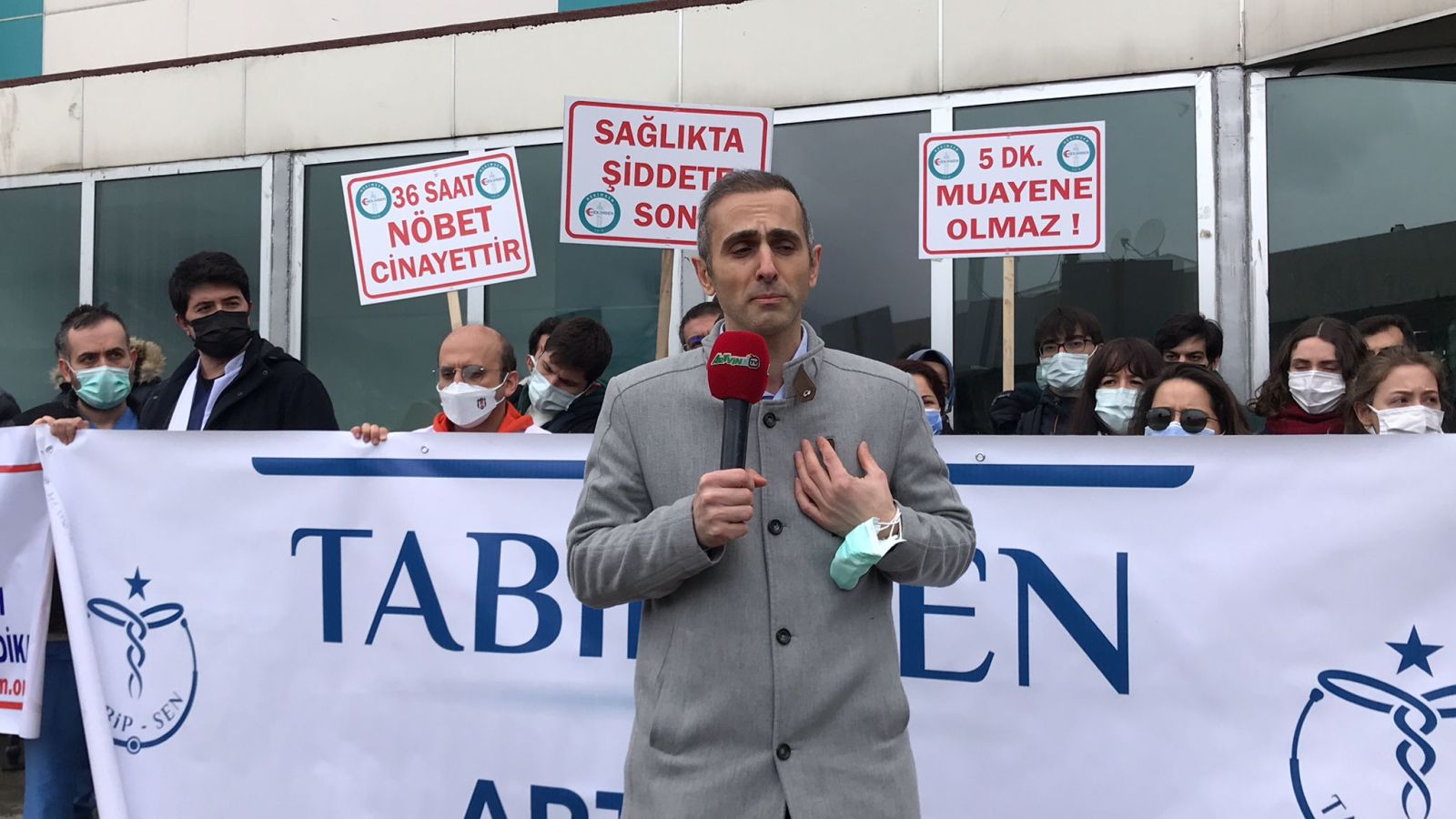 Kadın Doğum Uzmanı Yasin Serkan Kuruoğlu da, Mal Praktis yasasına değinerek “Bir doktor bin tane Hastaya aynı ilaçtan yazar, bir tanesinde sıkıntı olur ve bu sıkıntı olduğu zaman hasta doktora dava açabiliyor. Ama bu doktorun suçu değil. Bu olabilecek tıbbi bir komplikasyon tıbbi bir durum bunun için doktora dava açılıyor ve doktorun ömrü boyunca kazanamayacağı ücretlerin dava olarak tazminat olarak ödenmesini istiyorlar. Bu olmaması gereken bir şey. Şunu söylüyorum; biz kimseye karşı değiliz. Biz hiç kimseye hiçbir oluşuma karşı değiliz. Hele hele Kamu dairelerinde en çok hizmet etmiş olan doktorlar hiçbir şekilde devletine, halkına karşı değildir. Biz sadece yıllarca çığ gibi büyüyen olumsuz durumları naif bir şekilde anlatmaya çalıştık ama duyulmadı, duyulmadığı zaman da mecburen eylem yapmak iş bırakmak zorunda kaldık” diye konuştu.