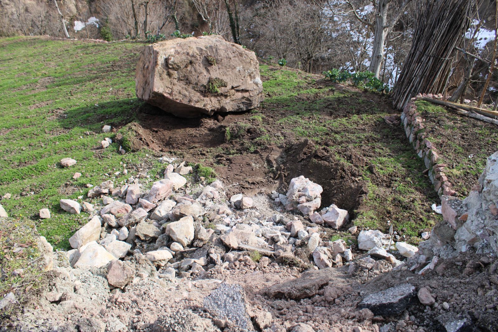 Kayanın evlerinin yanında. Geçerek babasının tarlasına düştüğünü belirten Ayık, “Kaya evlerin arasından geçmiş. Allah’a şükür evlere çarpmamış sadece, arazilere zarar vermiş. Bir değirmenimiz vardı onu da yıkmış. Evdekiler çok korkmuştu. Beni defalarca aradılar. Kalıcı bir çözüm bekliyoruz. Yıllardır burada yaşıyorum. Her sene benzer olaylar yaşıyoruz” diye konuştu.