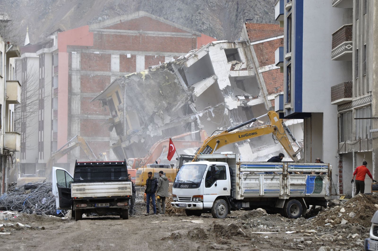 Binaların yıkım işlemlerinin devam ettiği eski ilçe merkezinden yeni yerleşim yerine henüz taşınmayan bazı esnaf, iş yerlerini boşaltmak için çalışmalarını hızlandırdı.