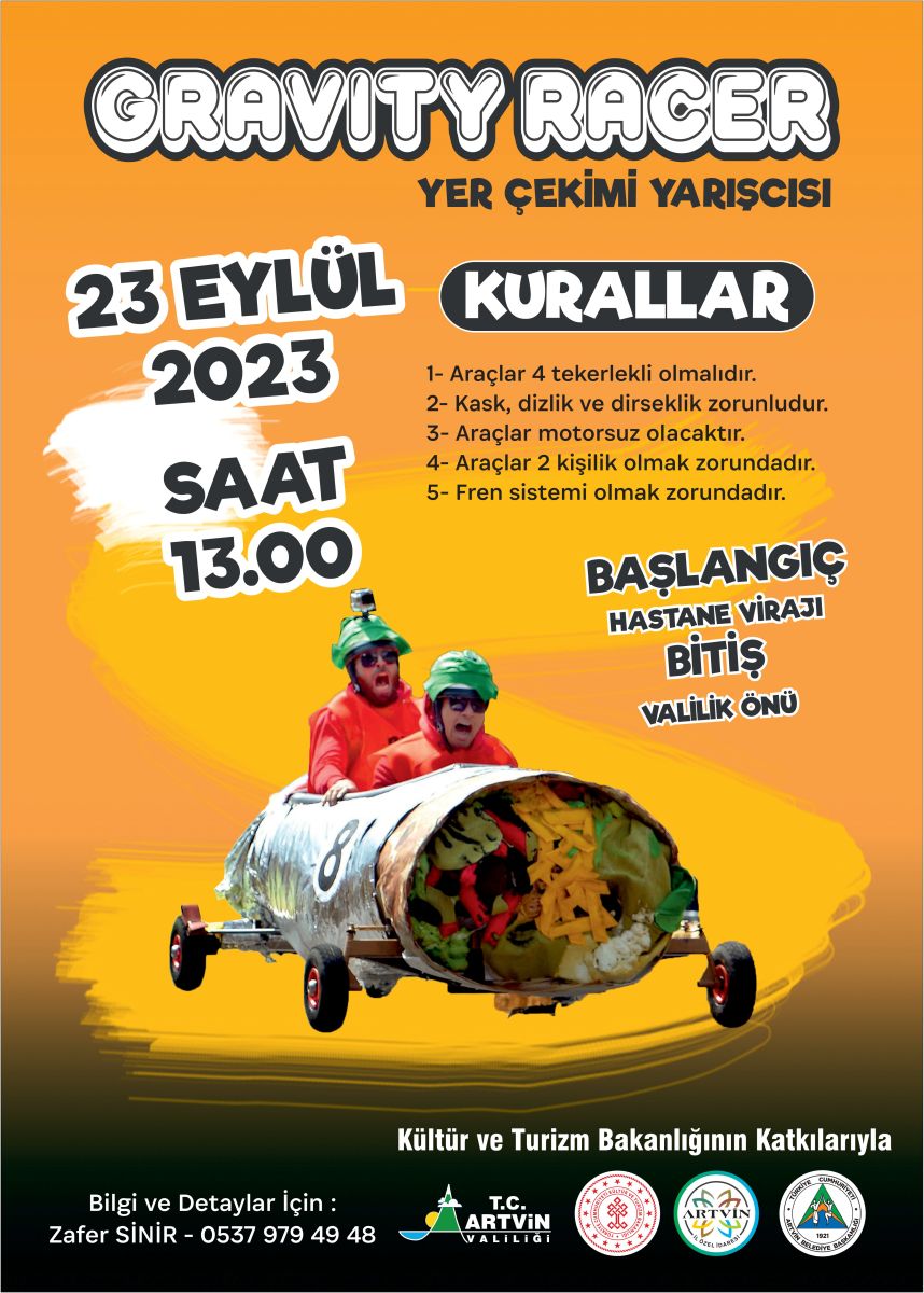 Artvin’de ve Türkiye’de bir ilk olan Gravity Racer yarışmasının bu sene ikincisi düzenleniyor. Artvin'e yeni bir heyecan katan bu etkinliğe bütün vatandaşlar davetli.