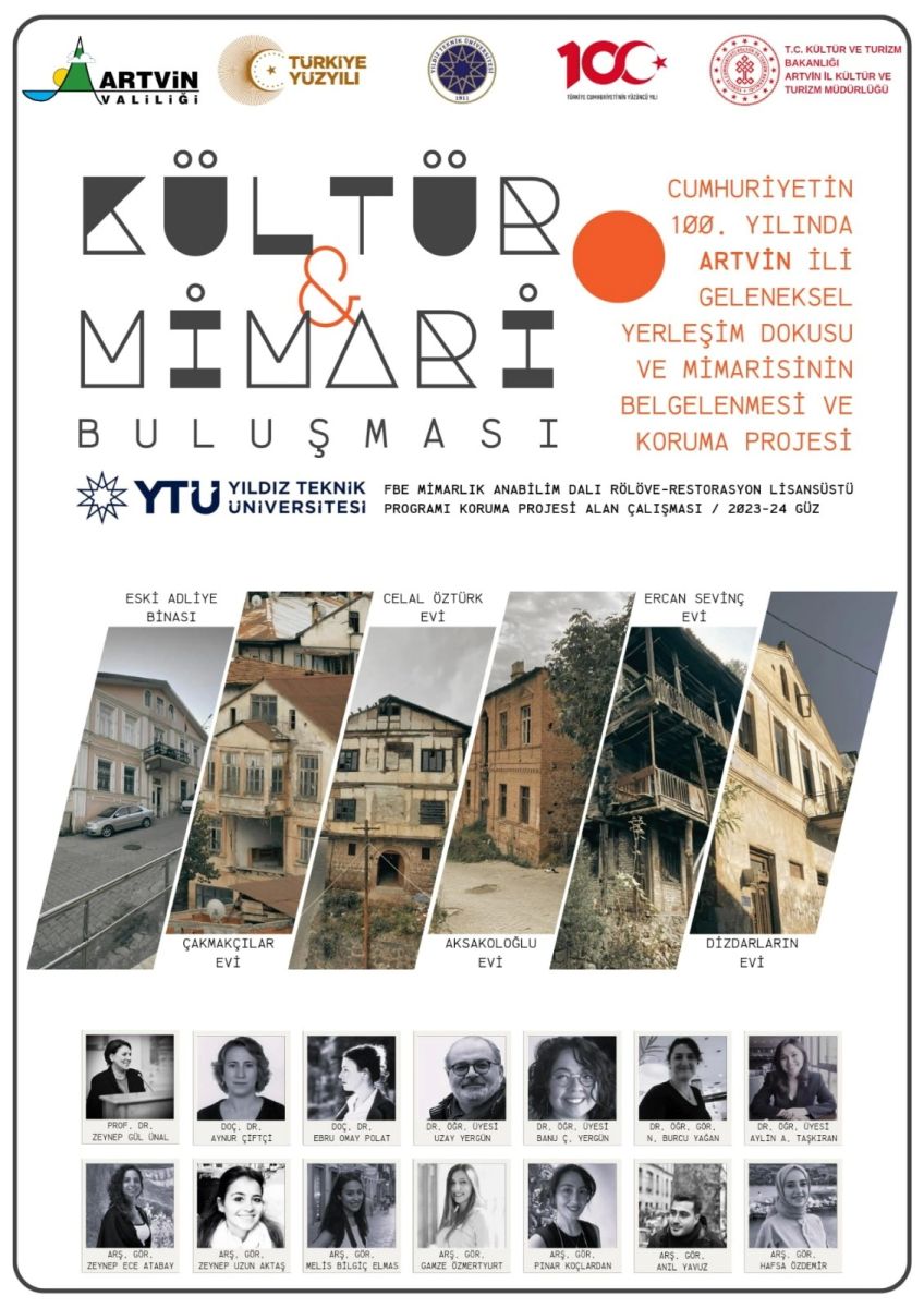 Artvin İl Kültür ve Turizm Müdürlüğü ve Yıldız Teknik Üniversitesi Mimarlık Fakültesi,Mimarlık Bölümü, Koruma ve Restorasyon Araştırma Grubu ile başlatılan “Artvin İli Geleneksel Yerleşim Dokusu ve Mimarisinin Belgelemesi ve Koruma Projesi - Alan Çalışması” Rölöve-Restorasyon Lisansüstü Programı 2023-24Güz Yarıyılı,“Koruma Projesi 1-2” ve “Tarihi Çevre Değerlendirme 1-2” dersleri kapsamında ilçeye gelen 15 yüksek lisans ve 3 doktora öğrencisi incelemelerine başladı. İlk olarak proje çalışmalarının koordinatörlüğünü yürüten Prof. Dr. Zeynep Gül Ünal, İl Kültür ve Turizm Müdürü Yunus Emre Aytekinile birlikte çalışmada yer alan öğretim üyeleri Prof. Dr. Can Ş. Binan, Prof. Dr. Zeynep Gül Ünal, Doç. Dr. Aynur Çiftçi, Doç. Dr. Ebru Omay Polat, Dr. Öğr. Üyesi Banu Çelebioğlu Yergün, Dr. Öğr. Üyesi Uzay Yergün, Öğr. Gör. Dr. Burcu Yağan Köylü, Arş. Gör. Dr. Aylin Akçabozan Taşkıran, Arş. Gör. Anıl Yavuz, Arş. Gör. Gamze Özmertyurt, Arş. Gör. Zülbiye Hafsa Özdemir, Arş. Gör. Pınar Koçlardan, Arş. Gör. Zeynep Ece Atabay katılımıyla Artvin Merkez ilçesinde yer alan tescilli binaları İl Kültür ve Turizm Müdürlüğü’nün bölge ile ilgili verdiği bilgiler doğrultusunda alanı gezen lisansüstü öğrencileri 22 Ekim tarihine kadar detaylı çalışmalarını sürdürecek.