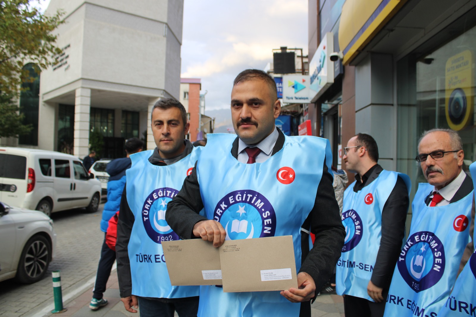 Eğitim Bir Sen Artvin Şubesi, 24 Kasım Öğretmenler Günü’nde maaş ikramiyesi istediklerini belirterek basın açıklaması yaptı.