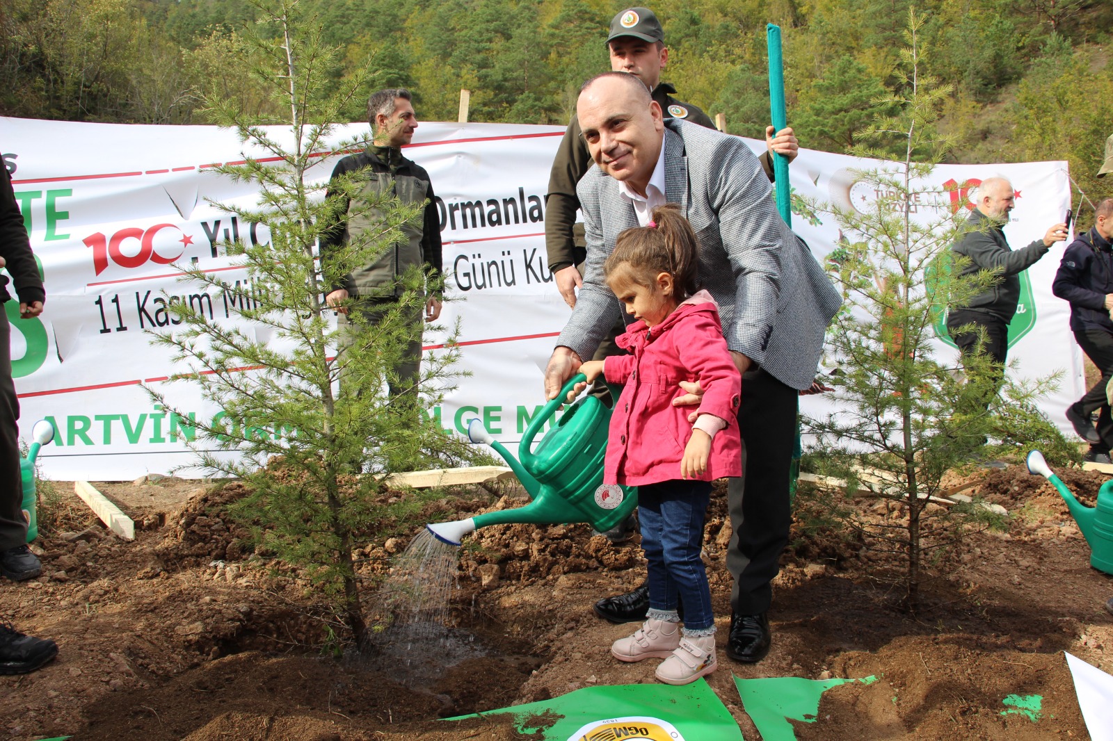 Milli Ağaçlandırma Günü fidan dikim etkinlikleri tüm kurum, kuruluş temsilcileri ve vatandaşlar ile birlikte, Cumhuriyetimizin ilanının 100’ncü yılı coşkusuyla, Türkiye genelinde 2023 farklı sahada, 81ilde ‘100. Yıl Cumhuriyet Ormanları’ tesis edileceğini vurgulayan Özkaya, “Bizde Cumhuriyetimizin ilanının 100. yıl dönümünde Artvin İlimizde tüm ilçelerde 48 lokasyanda100 bin adet fidan dikimi ile bu seferberlikte yerimizi alıyoruz. Bugün saat 11:11’de bu bereketli topraklarda, ıhlamur lavanta, ceviz, elma, sedir, servi ve defne başta olmak üzere toplam 2023 adet fidanı toprakla buluşturduk. Çocuklarımıza, torunlarımıza bırakacağımız en değerli miras, bugün dikeceğimiz bu fidanlar olacak. 11 Kasım Milli Ağaçlandırma Günü’nde Türkiye Yüzyılına Nefes olmak için hazırız.” diye konuştu.