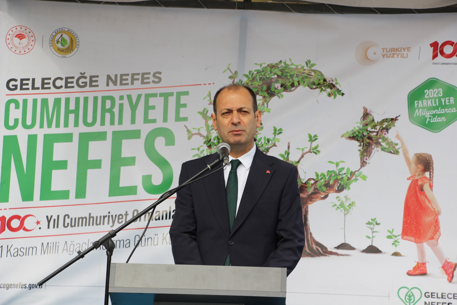 Fidan dikim etkinliğinde konuşma yapan Vali Cengiz Ünsal, “11 Kasım Milli Ağaçlandırma Günü; ormanlarımızı korumak, sürdürülebilir şekilde yönetmek ve gelecek nesillerimiz için yurdumuzu daha sağlıklı, daha yaşanabilir kılmak için bir farkındalık ve fidanları toprakla buluşturma günüdür. Ormanlarımız en değerli hazinemizdir. Ormanlarımıza sahip çıkmak ise bizim insanlık vazifemizdir.11 Kasım, bu hazinemize ve vazifemize sahip çıktığımız, geleceğe nefes olduğumuz önemli bir gündür. Her yıl 81 ilimizde milyonlarca fidanı toprakla buluşturuyoruz. Geleceğimize nefes, çocuklarımıza neşe oluyoruz.” dedi.
