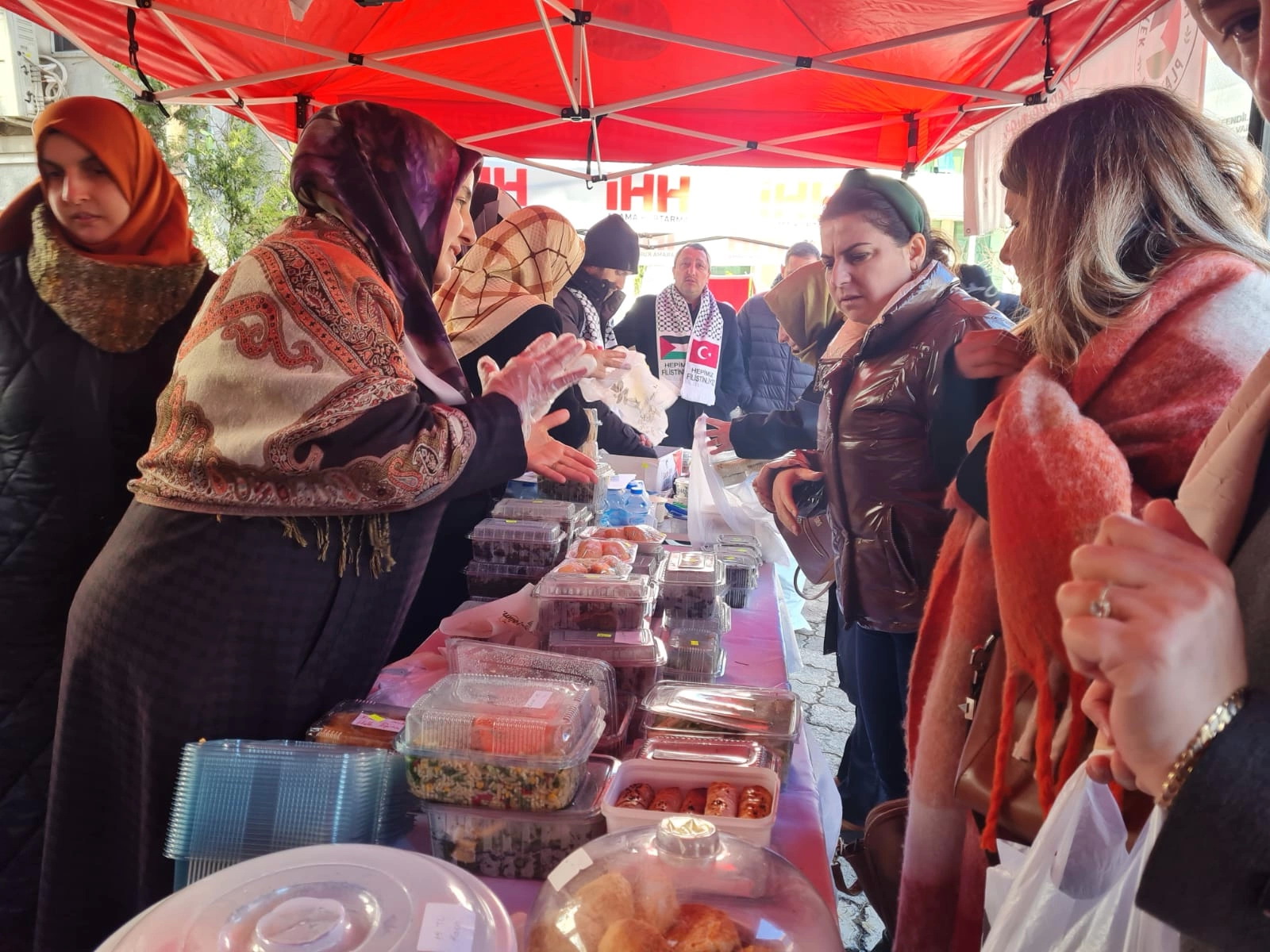 Valilik önündeki Milli İrade Meydanı’nda Filistin’e Destek Platformu tarafından düzenlenen kermeste gönüllü kadınlarca hazırlanan yiyecek ve içecekler satışa sunuldu.