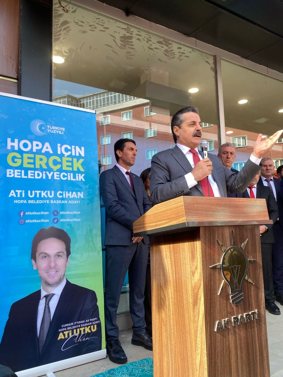 Hopa Belediye Başkan Adayı Ati Utku Cihan, burada yaptığı konuşmasında vatandaşlara seslendi. Şehri daha iyi bir yer haline getirmek, vatandaşlara daha iyi hizmet sunmak ve gelecek nesillere daha güzel bir miras bırakmak istediğini ifade etti.
