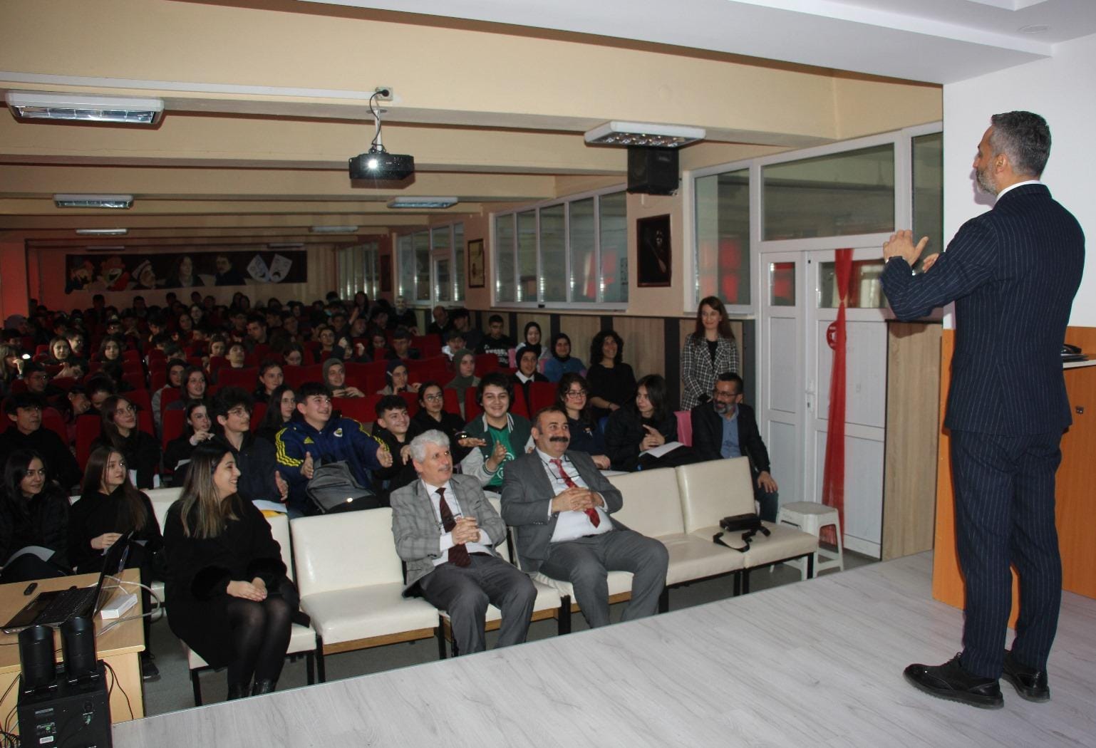 Seminerde yaklaşık 50 dakika boyunca çok çılgın ve farklı konulara değineceğini ifade eden Kılıç, “Ütopik, gelecek vadeden konular konuşacağız. Sunum boyunca birkaç tane ödülümüz olacak. Sabah bir başka okulda ödüllerimizin bir kısmını dağıtamadık. Soruları bilemediler. İnşallah sizlere ödülleri veririz. Bugünkü seminerdeki amacımız hayatınızın başında gençler olarak doğru yönü bulabilmeniz, karakterinize, kişiliğinize, doğanıza, fıtratınıza uygun meslekler seçebilmeniz, geleceği doğru yönlendirmeniz adına büyük bir emek var. Hem Artvin Milli Eğitim Müdürlüğümüz hem bizler, pırıl pırıl gençlere doğru yönü göstermek adına böyle bir etkinlik planlandı. Umarım buradan çıktığımızda farklı perspektiflere, farklı bakış açılarına sahip oluruz. Biraz daha hayatla ilgili somut edinimler elde ederiz. Zira zaten okulunuz rehberlik birimleri, öğretmenler sizlere gereken bilgilendirmeyi yapıyordur. Kendilerine ben de teşekkür ederim. Ben de bir üniversite hocası olarak hayattan süzdüğümüz deneyimleri sizlere aktaracağız. Bazı sorularımız olacak, bazı bakış açıları sunacağız.
