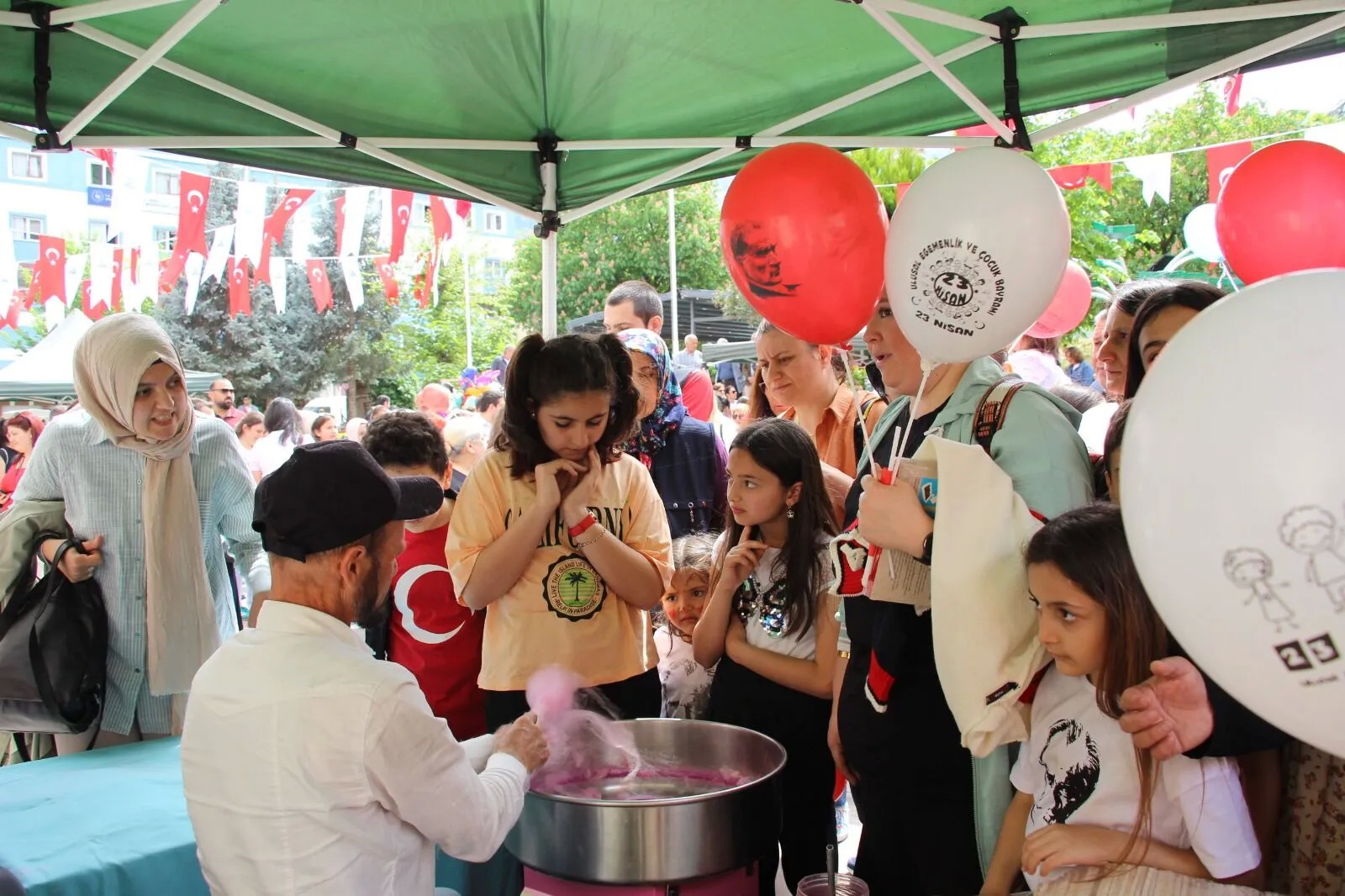 Belediye Hizmet Binası önünde düzenlenen şölende çocuklara; palyaço, süper kahramanlar, ücretsiz dondurma, pamuk şeker ve balon dağıtıldı.