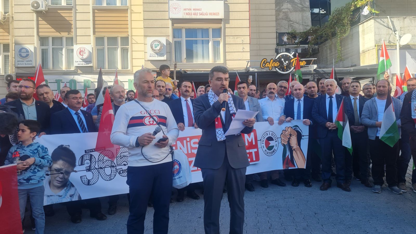 İnce, “Hala dengeleri gözetleyen, küçük çıkarlarının kaybolmasından korkan bir İslam dünyası manzarası ile karşı karşıyayız. İbrahim anlaşmasının peşinde İsrail’e ve ABD’ye yardım ve yataklık yapan bölge ülkeleri, maalesef onurumuzu zedeliyorlar. Ama gerçek ortada…Batı’yı arkasına alan İsrail, bütün bölgeyi ateşe vermeye başladı. Geçen yıl Gazze’de başlayan vahşet ve soykırım bugün Lübnan ve Yemen’e de sıçramış durumda. Bugün Artvin Halıtpaşa Meydanı’nda, Filistin halkının haklı mücadelesine ve direnişine destek olmak, Gazze'den sonra Lübnan’a sıçrayan, Yemen'i de hedef alan bu alçakça işgale, katliam ve soykırıma dur demek için buradayız. Türkiye, uzun zamandır bu uyarıyı yapıyor. Sayın Cumhurbaşkanı’nın geçen haftaki uyarısı bu noktada çok önemli. Bir kere şunun altını net bir şekilde çizelim… Emperyalist stratejilerle Siyonist İsrail’in arz-ı mevud hedefi birbiriyle örtüşüyor. Doğu Akdeniz’deki savaş gemilerini, katil rejime yapılan silah yardımlarını başka nasıl açıklayabiliriz? Kirli bir oyunla karşı karşıyayız. Onun için tekrar altını çizmekte fayda var: Türkiye’nin savunması Gazze’den başlar! Lübnan saldırısı, savaşın yeni bir evreye geçtiğini gösteriyor. Batılı başkentlerde ise aynı kalıpta açıklamalar devam ediyor. Dün komplo denilerek küçümsenen stratejilerin bugün gerçekleştiğine hep birlikte şahit oluyoruz. Onun için, kimse olayları bizden uzak zannetmesin. Aymazlık ve gaflet sonumuz olur. Vakit teyakkuz vakti. Vakit Gazze hattına destek olma vakti. Vakit insanlık haysiyetini sahiplenme, vicdanın sesi olma vakti. Vakit kardeşlerimize sahip çıkma vakti.” dedi.