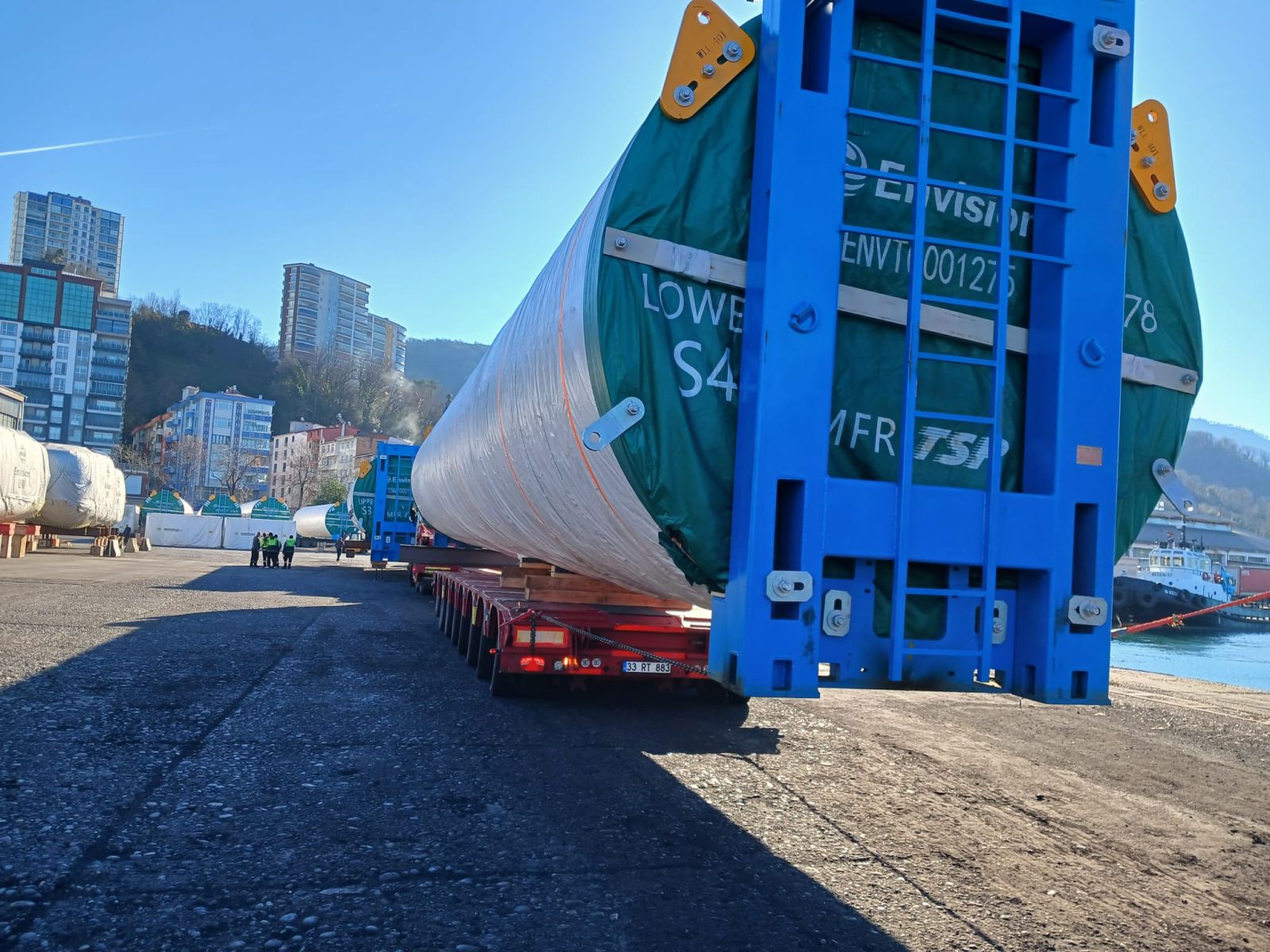 Yılın en dikkat çekici operasyonlarından biri, Çin’den gelen dev rüzgâr gülü ekipmanlarının başarıyla elleçlenmesi oldu. Büyük tonajlı kargo gemilerinin yanaştığı limanda, rüzgâr enerjisi santrallerine ait parçalar titizlikle liman sahasına indirildi. Bu devasa ekipmanlar daha sonra kara yoluyla Azerbaycan’a sevk edilmek üzere tırlara yüklendi. Operasyonun en kritik aşamalarından biri olan rüzgâr gülü gövdesinin taşınması, 4 Haziran Çarşamba günü saat 23.30 sularında Sarp Sınır Kapısı’ndan Gürcistan’a geçişiyle tamamlandı.