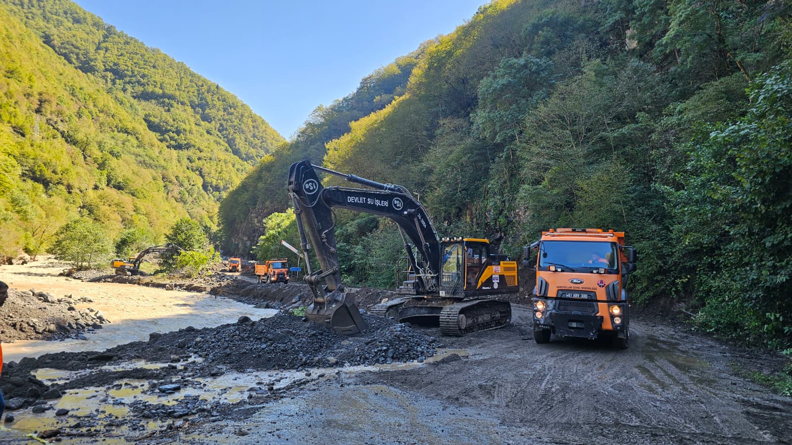 Şiddetli yağışların yol açtığı sel ve heyelanlar nedeniyle ulaşımda aksamaların yaşandığı Borçka’da, Bakan Uraloğlu ve Bakan Bak sahada yapılan çalışmaları yerinde takip etti.