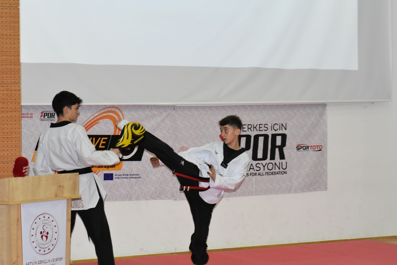 Avrupa Spor Haftası’nın kapanışı ve Amatör Spor Haftası’nın açılışı dolayısıyla Artvin Gençlik Merkezi’nde düzenlenen program, renkli gösterilere ve anlamlı konuşmalara sahne oldu. Saat 15.00’te başlayan etkinlikte konuşmaların ardından halk oyunları, tekvando ve jimnastik gösterileri gerçekleştirildi. Program sonunda başarılı sporculara ve antrenörlere hediyeler takdim edildi.