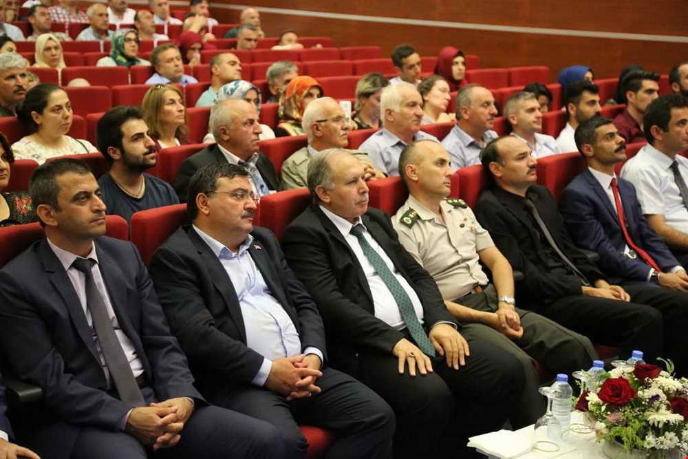 Saygı Duruşu ve İstiklal Marşının okunmasıyla başlayan ve Artvin Çoruh Üniversitesi Öğretim Üyesi Yrd. Doç. Dr Cihan Kara’nın konuşmacı olarak yer aldığı konferans 15 Temmuz hain darbe girişimin kronolojik olarak anlatıldığı sunumla devam etti.