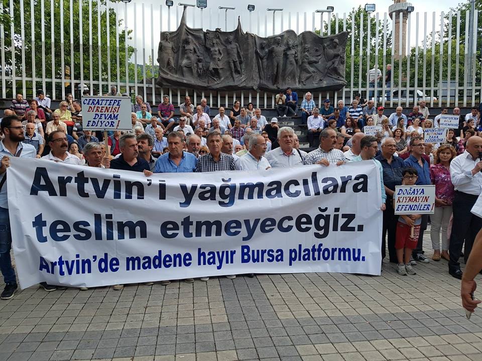 Danıştay'ın, Cerattepe'deki altın madenciliğine olur vermesi birçok ilde eş zamanlı basın açıklamaları ile protesto edildi. Bursa'daki geniş katılımlı basın açıklaması sırasında, mücadelenin devam edeceği ifade edilerek, 'Altınsız olur, Artvin'siz olmaz' sloganı atıldı.