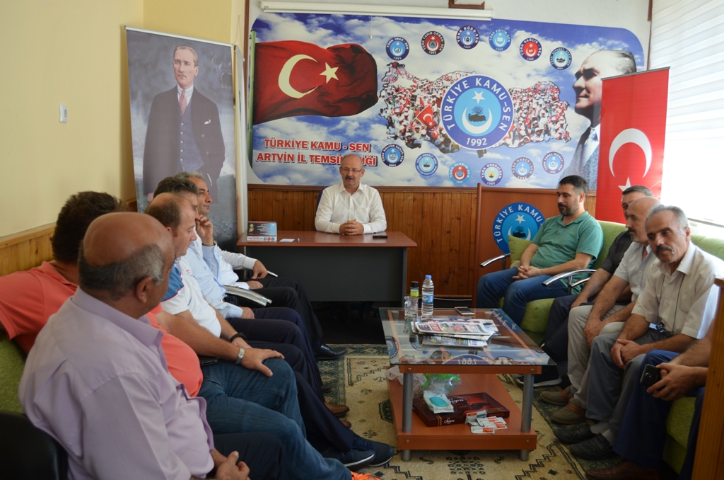 Türk Haber-Sen Genel Başkanı Sedat Yılmaz ve Başkan Yardımcıları Musa Karabina, İlhan Yaman Anadolu turnesi kapsamında Artvin’e gelerek Türkiye Kamu Sen ve Türkiye Eğitim Sen Artvin Şube Başkanı İsrafil Bayrak, Türk Sağlık Sen Artvin Şube Başkanı Hüseyin Kocaman, Türk Diyanet Vakıf Sen Artvin İl Temsilcisi Abdurrahman Yıldız, Türk Tarım Orman Sen İl Başkanı Erdal Er, Türk Haber Sen Artvin İl Temsilcileri Oğuzhan Aslan ve Ömer Özer ile bir araya geldi.