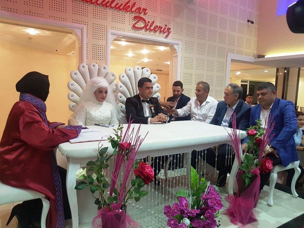 Borçka Belediye Başkan Vekili Mehtap Şentürk’ün gençlerin nikahları kıyarken, Vali Doğanay ile Erzurum Hizmet-İş Sendikası Şube Başkanı Erol Aksakal nikah şahidi oldu.