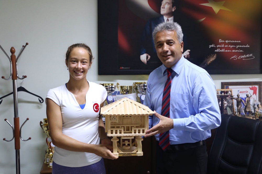 Ziyaretleri için Zeynep ve ailesine teşekkür eden Başkan Hekimoğlu, genç sporcuya tenis hayatında üstün başarılar diledi ve kendisine günün anısına serender maketi hediye etti.