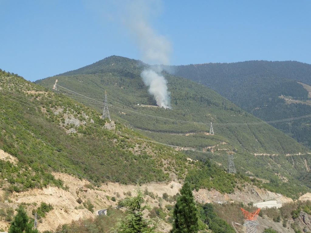 Artvin’in Salkımlı Köyü Saçınka bölgesinde çıkan yangın Artvin Belediyesi ve Orman Bölge Müdürlüğe bağlım ekipler arasöz ile yangına müdahale etti.
